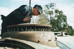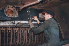 of boiler inspector Bernie Dickinson a cold water pressure test on the header to check for any