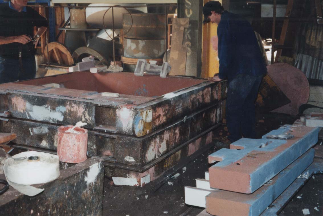 A polystyrene pattern being used to form the sand casting at McKechnies Foundary in