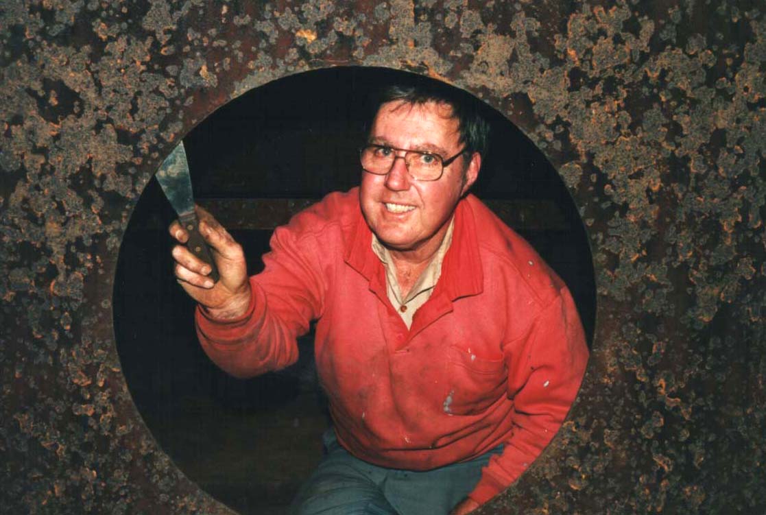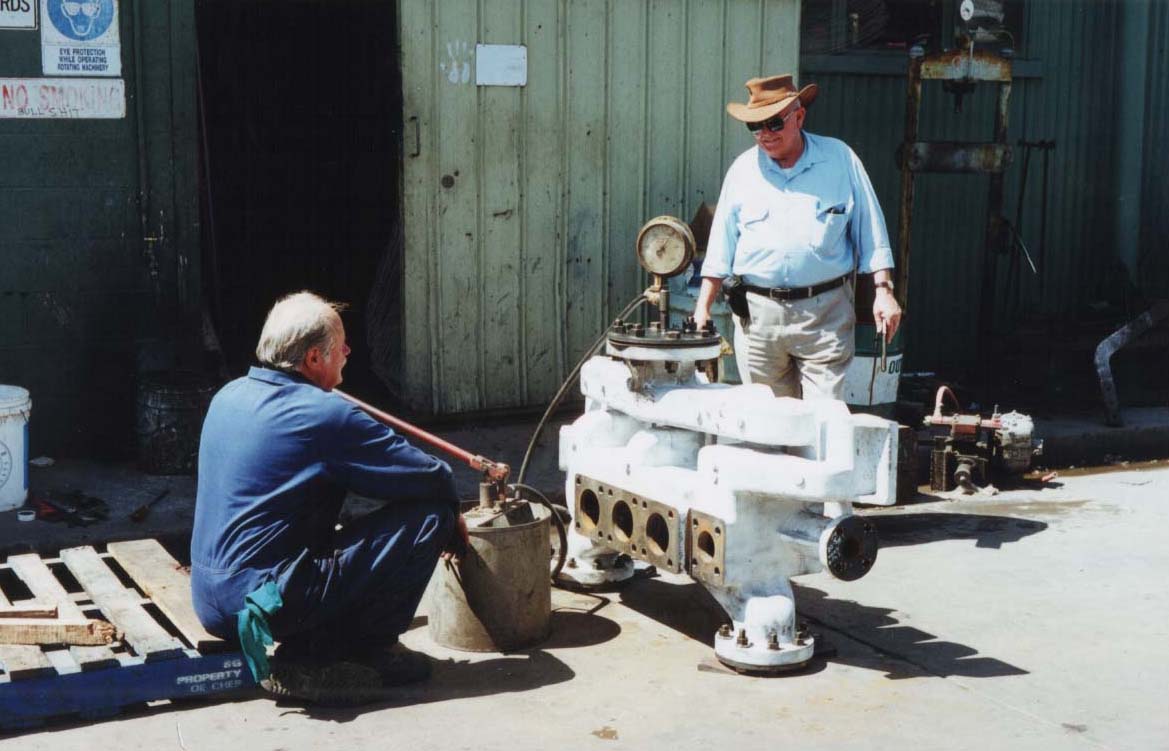 | ![]() .... and then awaits the consequences of a hot hydro | ![]() .... with inspector Bernie Dickinson | ![]() Dear, dear. A couple of leaky cracks! | ![]() .....which needed to be ground out and repaired | ![]() Back together again....and a test run to Victor Harbor for all the