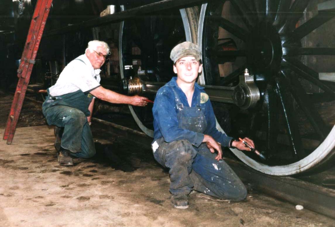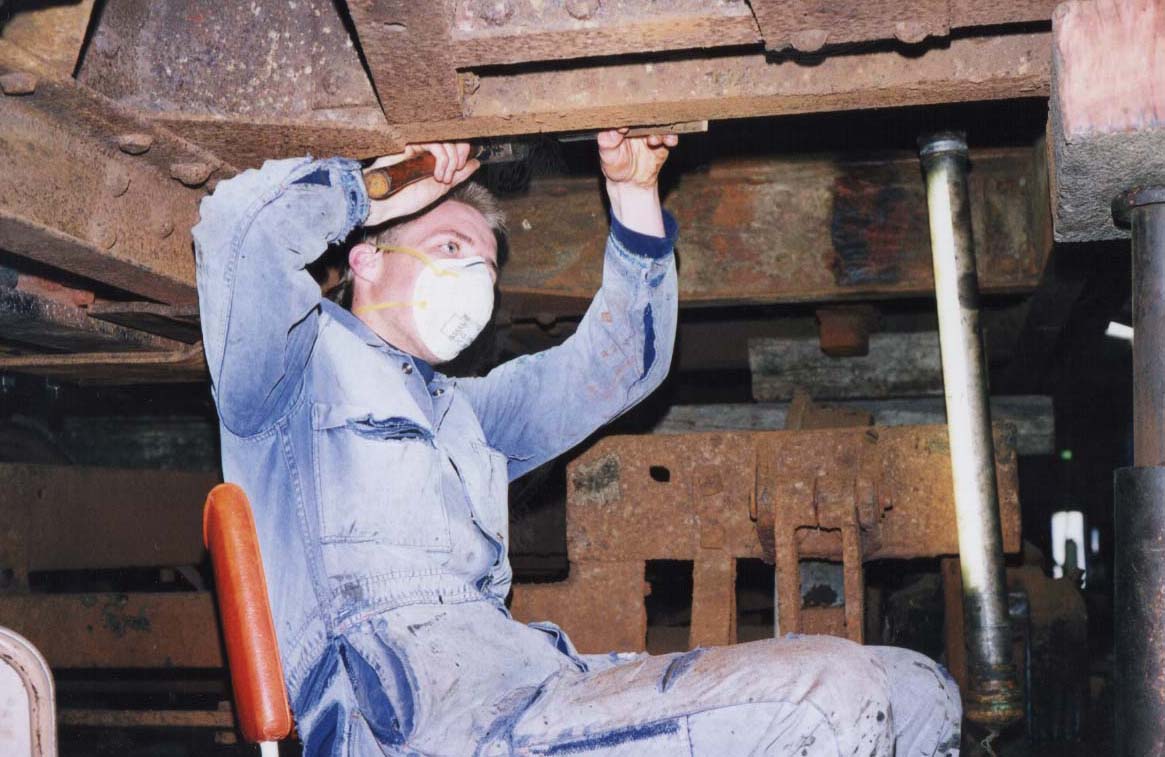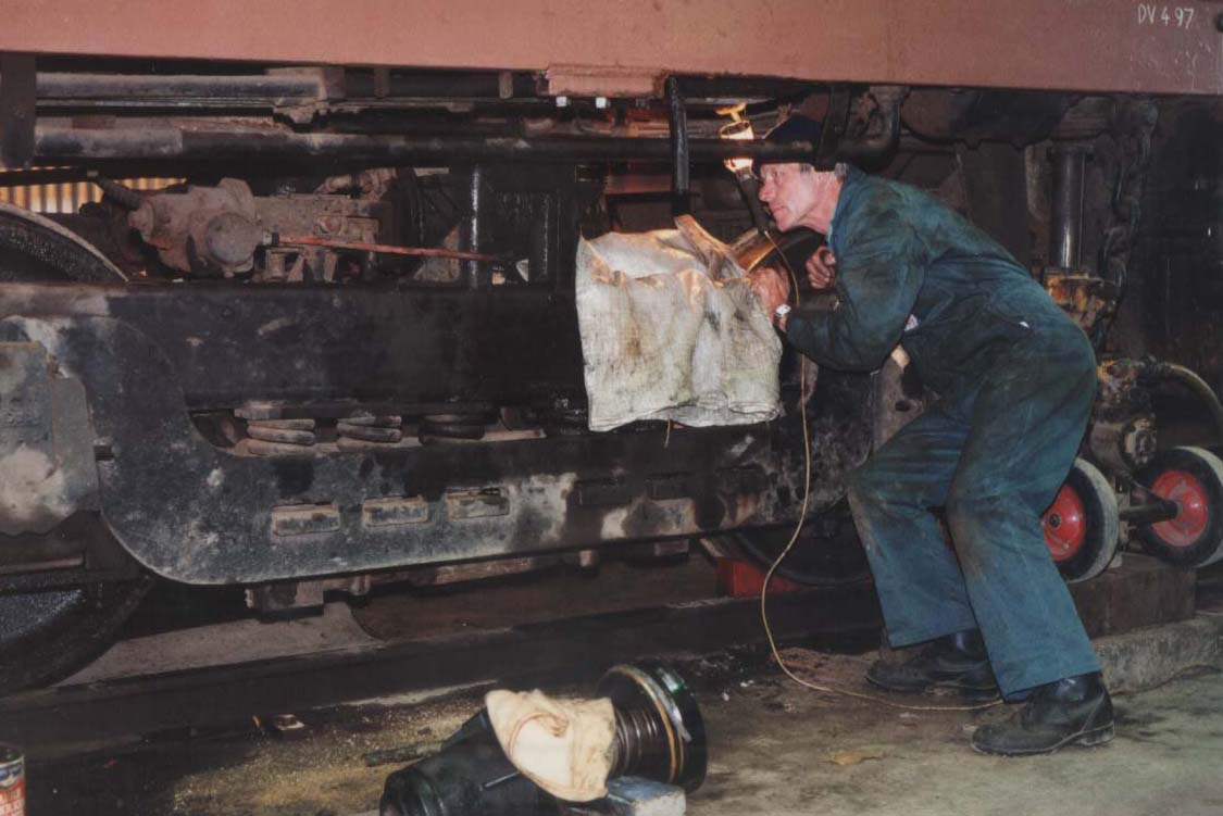 contract by SteamRanger | ![]() Eddie Howes servicing DE 350's brake cylinder (June 99) | ![]() and the "boss" - Loco Manager imprisioned in F251's firebox - the best place