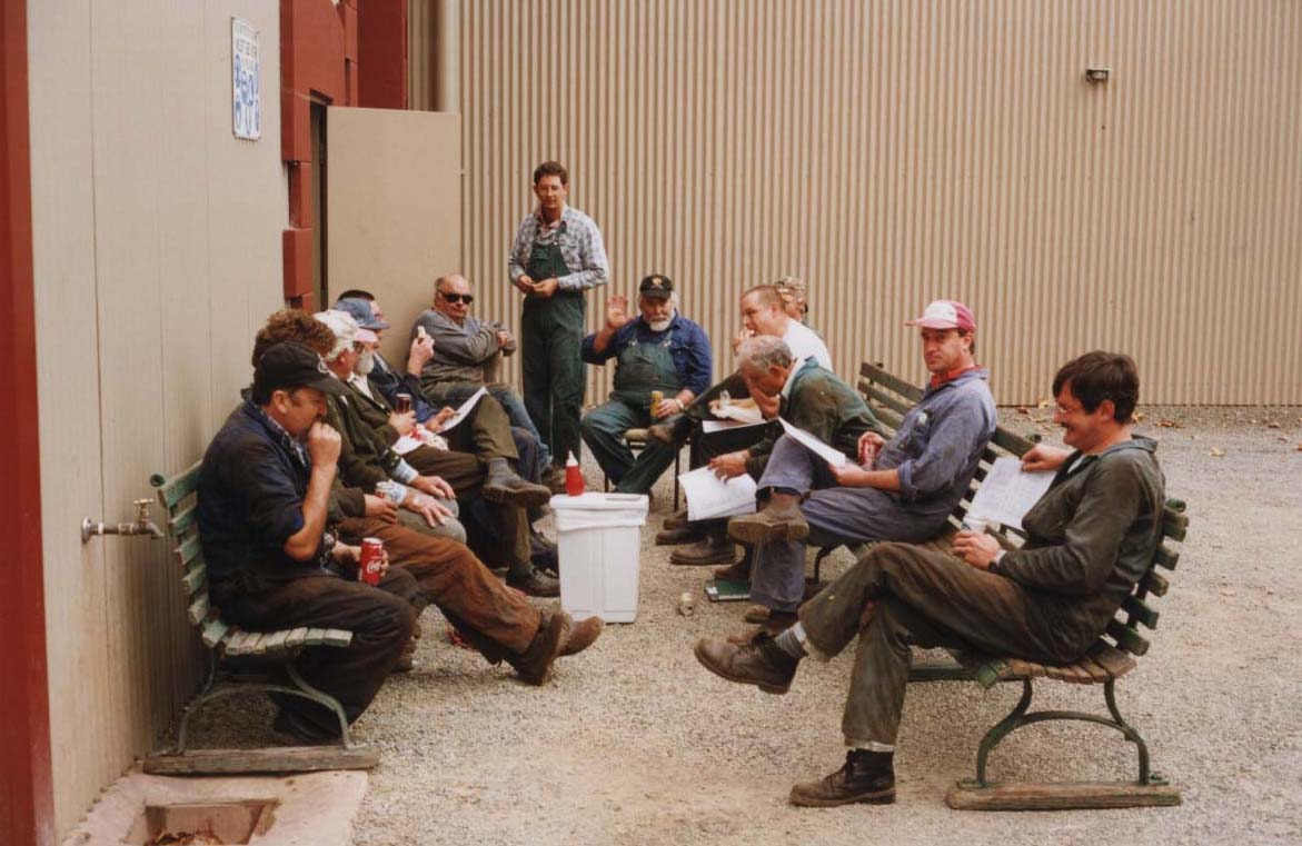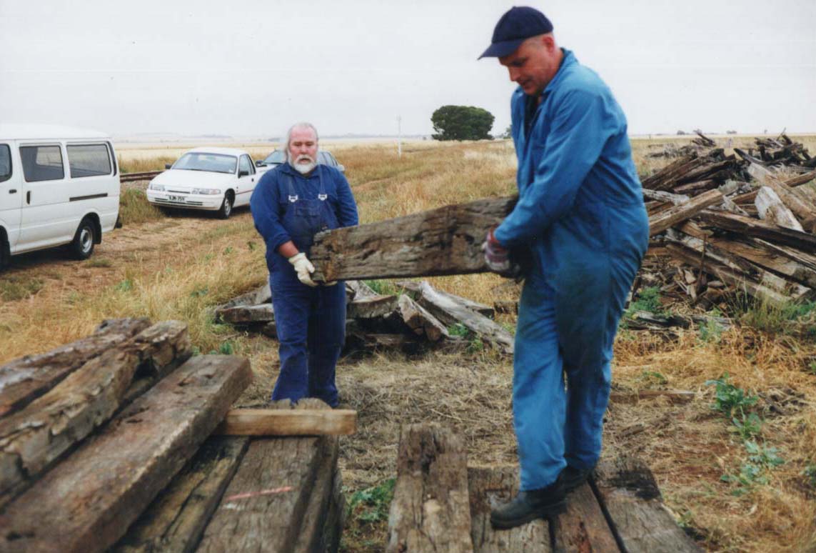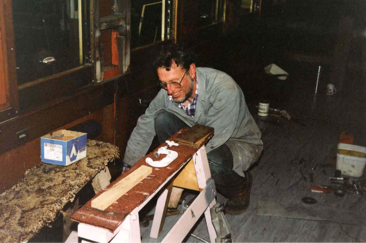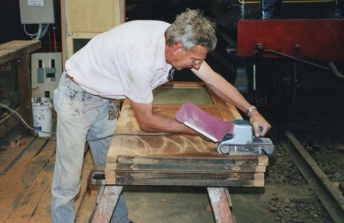 drivers | ![]() Brenton Job wrestles with the coal grab bucket (Sept 98) | ![]() Ross Vonow showing his carpentry skills in the restoration of CEntenary car 60