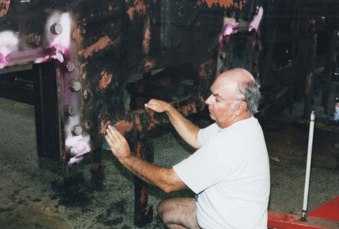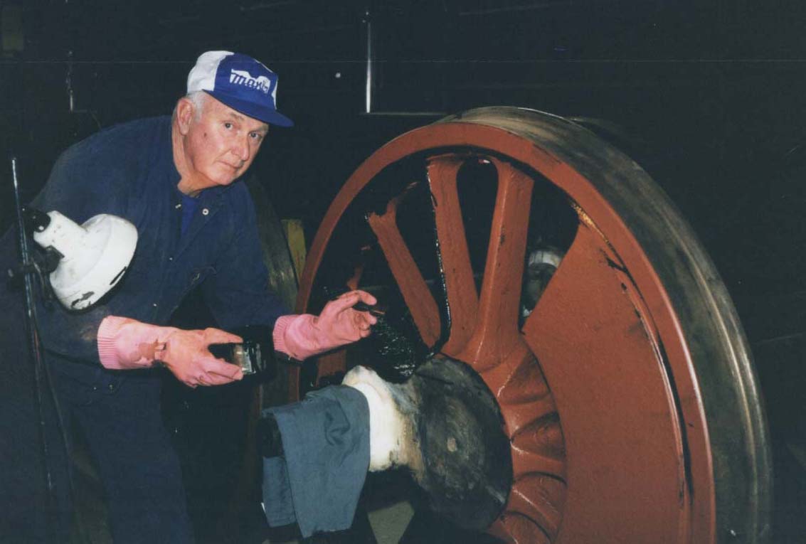 | ![]() Roger Currie, fireman and lubrication guru, grinding irregularities off F251's