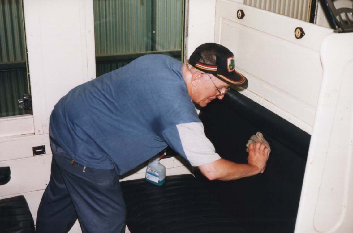 98) | ![]() Andrew Gramp and Peter Brown demolishing Car 82 battery boxes | ![]() Ralph Lee, a stalwart Past president fills his trusty mobile water tank before