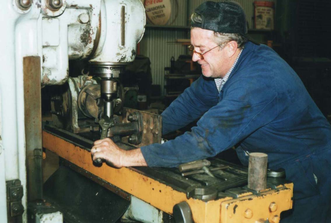 worker! | ![]() Ron Williams (our full-time fitter at Mt Barker) machining 520's conrod | ![]() A mystery volunteer welder (centre) with colleagues Brenton Job and Peter